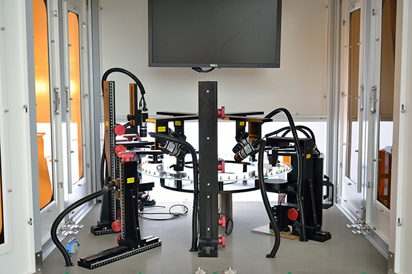 轴类零件自动检测设备采用双远心光路,背光源照明,高分辨率面阵CCD相机成像,并通过电动滑台定位,以及高精度图像拼接,获取全轴高质量图像;系统通过智能区域定位、亚像素边缘提取等算法获得工件几何形状信息并进行统计分析与报告输出。