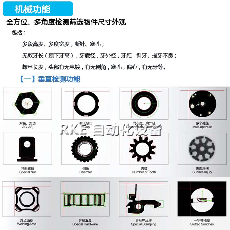 U型槽影像筛选机检测弹簧,全面检测产品高度、宽度、长度检测,检测范围广,精度高,速度快。